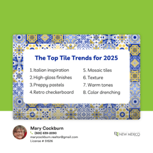 The tile trends for 2025 are all about bold expressions and personality, with designs that bring character and style to any space. Popular choices include metallic finishes, intricate mosaics, and innovative designs that elevate surfaces throughout the home. If 2025 is the year of buying or selling for you, send me a message and let’s chat!