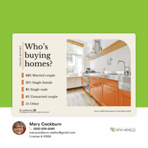 The path to homeownership looks different for everyone, and recent data from NAR shows just how varied today’s buyers really are. These shifts reflect changing lifestyles, priorities, and the growing independence of buyers who are making moves on their own terms. It’s a good reminder that your journey doesn’t have to look like anyone else’s to be valid-or successful. Give me a call to start yours!