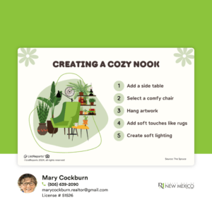As the winter months approach, having a cozy nook in your home offers more than just a pleasant place to sit – it creates a dedicated space for relaxation, reflections, and engaging in hobbies, like reading, journaling, knitting or even light meditation, giving you a much – needed mental break from daily stresses. If you’re looking for more space in your home, send me a message and let’s chat!