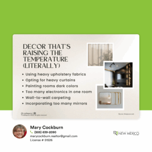 If your home’s been feeling extra hot lately, your décor could be part of the problem. Interior designers caution against heavy fabrics, dark paint, and excessive tech-all of which can trap heat and reduce airflow. Even mirrors placed in sunny spots can amplify heat and, in some cases, pose a burn risk. To cool things down naturally, prioritize circulation: opt for breezy materials like linen and stick to lighter colors that reflect rather than retain heat.