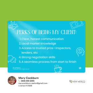Being my client means you’re never navigating the real estate world alone. From our first conversation to closing day (and beyond!), I’m here to make things easier, clearer, and more successful for you. You’ll get honest advice, market insights tailored to your goals, access to a trusted network of professionals, and a calm, confident advocate in your corner every step of the way. Whether you’re buying your first home, upgrading, or selling, I’m committed to making the process smooth and enjoyable! If you or someone you know have a real estate need, reach out to me to get started.