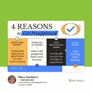 Before you start house hunting, make sure you’re preapproved! It shows sellers you’re serious, gives you a clear budget, and can even help you close faster. In a competitive market, having that pre-approval letter can make all the difference. Ready to start the process? Give me a call and I will help you locate a trusted lender.