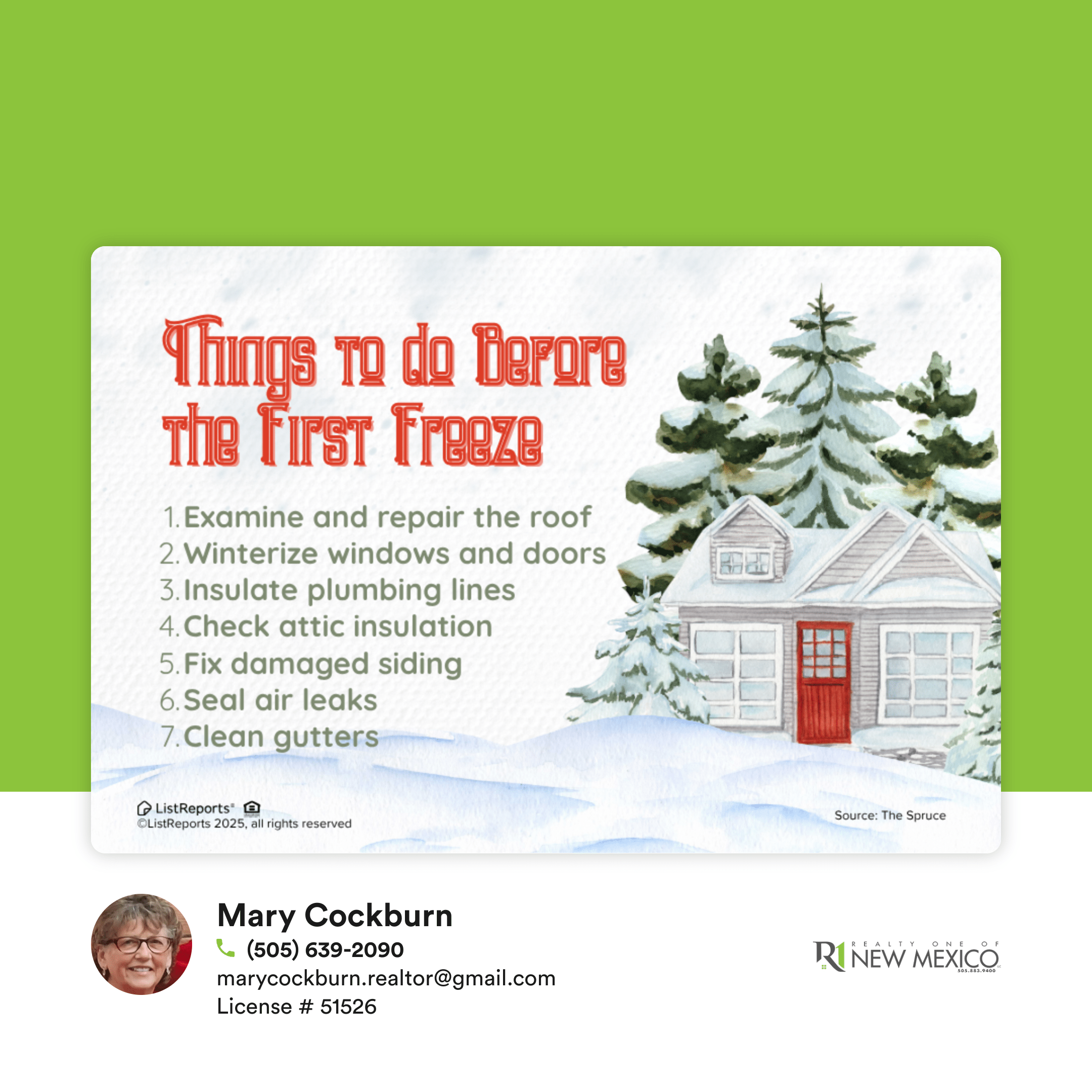 Winter is coming! Before the first freeze, be sure to check your home – seal drafts, clean gutters, inspect the roof, and protect pipes from freezing. Remember, taking a few simple steps now can save your big headaches (and money) later.