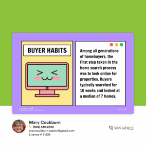 No matter the generation, homebuyers start their search online.  That’s why high-quality listing photos and accurate property descriptions are so important!  A strong first impression online can make all the difference when selling a home, with buyers often counting out homes that look poorly maintained, cluttered or outdated.  If you are looking at selling or buying give, send me a text or give me a call.  I am here to help you.
