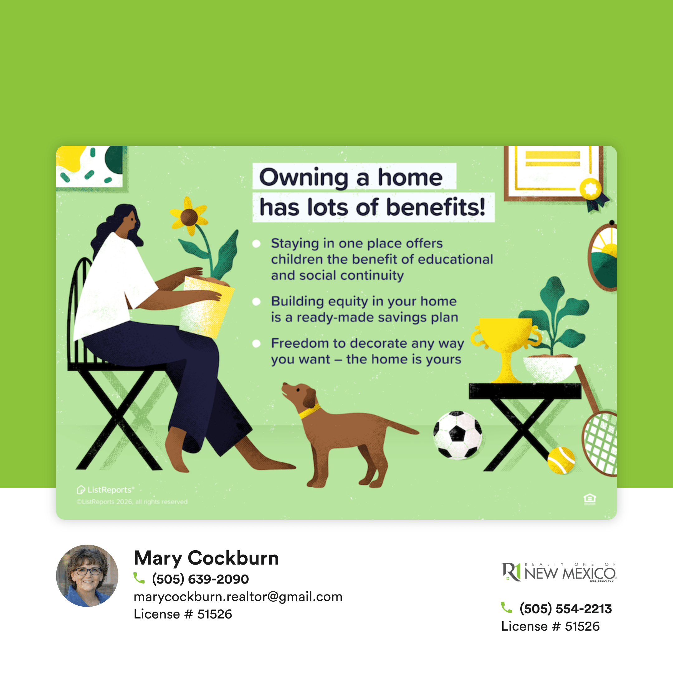 Homeownership can offer more than just a place to live – it can create stability, flexibility and long-term financial growth.  For many people, it becomes a foundation for building memories, routines and a sense of belonging.  Over time, the investment you make in your home can also support your bigger financial goals.  If you’re curious about what homeownership could look like for you, send me a message and let’s talk through your options.