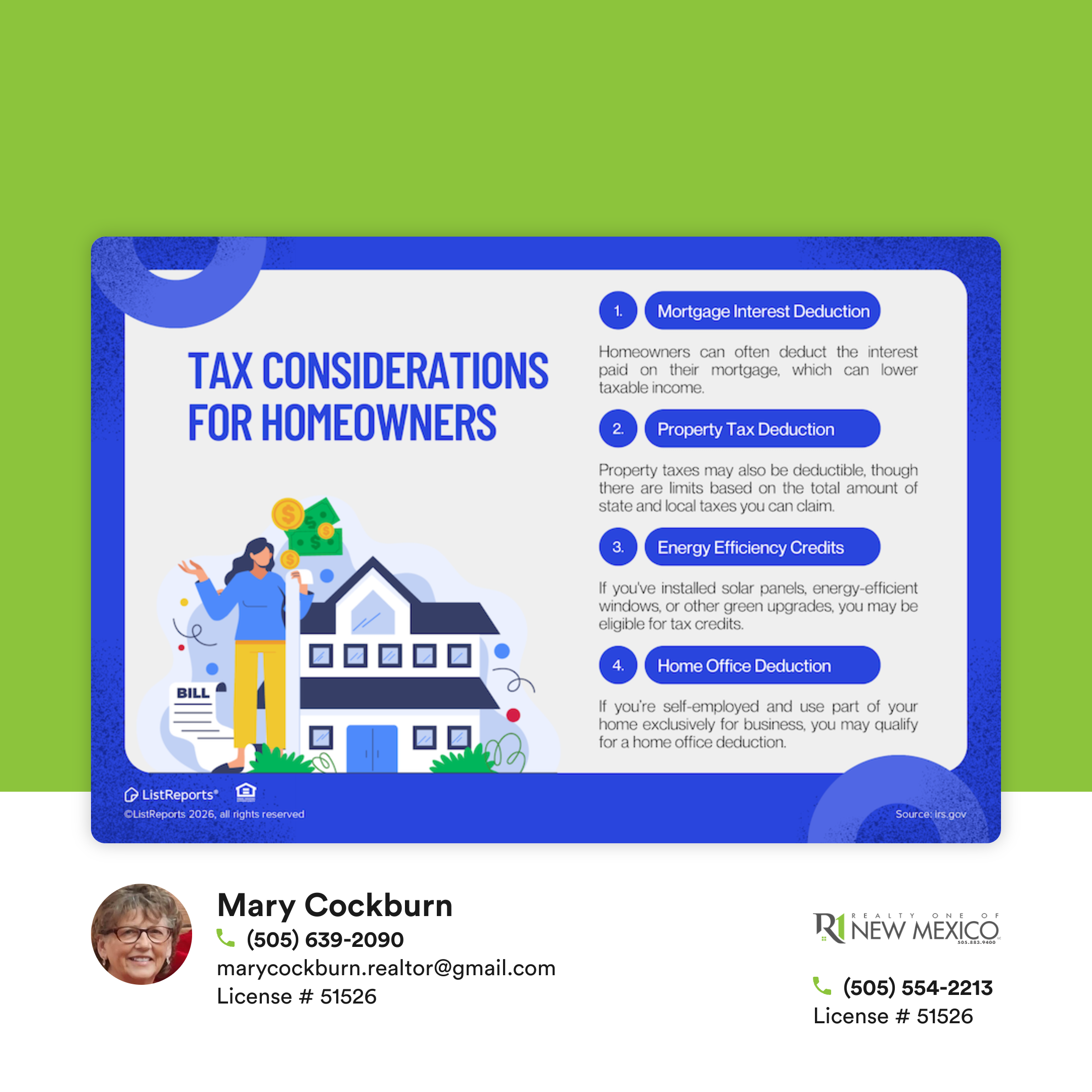 Homeownership comes with tax perks! As the year wraps up, make sure you’re getting the most out of your mortgage, property taxes and more. Need advice on how owning a home can help your finances? Give me a call or send me a text, I am here to help you with any of your real estate needs.