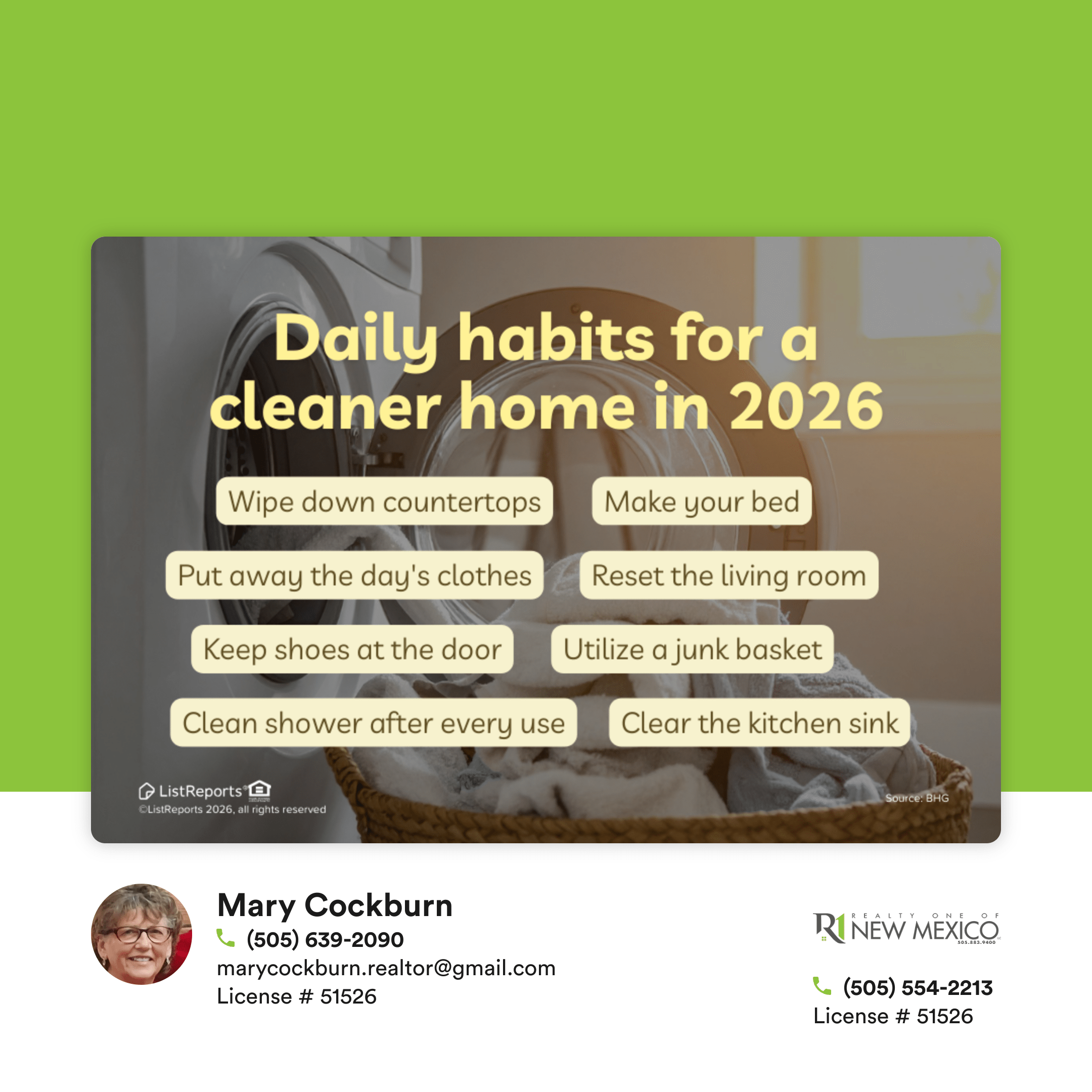 Daily cleaning habits make maintaining your home feel manageable instead of overwhelming, and when it comes to selling, they can make a big difference in how your property shows to potential buyers. A home that’s consistently tidy and well-kept feel more inviting, spacious and cared for, helping buyers imagine themselves living there. If you’re thinking of buying or selling real estate in 2026, send me a message! I’d love to be a part of your journey.