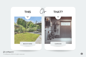 Thankfully, “both” are an acceptable answer with me as your realtor! Let me know what you’re looking for in a home, and I’ll make sure we find it. A garage and a yard topped the list of what byers want most. Which one can you not live without?