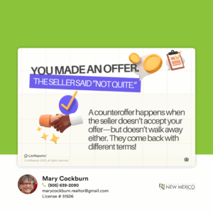 Making an offer is a big step-but sometimes, the seller has a few tweaks in mind.  That’s where a counteroffer comes in! It’s all part of the negotiation dance, and I’ll help you navigate it with confidence.  From first offer to final signatures, I’ve got your back.  Ready to start house hunting?  Let’s chat!