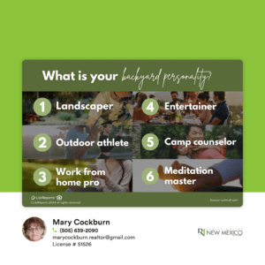 You should be the main character of your own backyard. Whether you’re a green-thumbed gardener, backyard builder, or a hardworking host, your local real estate broker can help you find a space that will facilitate all of your outdoor hobbies.